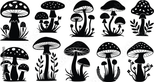 Mushroom Silhouette Vector Set – Wild Fungi Nature Clipart Collection