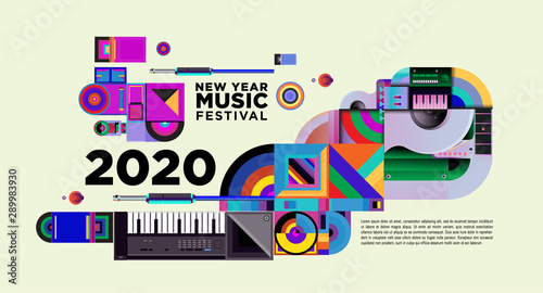 Music Festival Illustration Design for 2020 New Year Party and Event. Vector Illustration Collage of Music Festival Background and Wallpaper in eps 10.