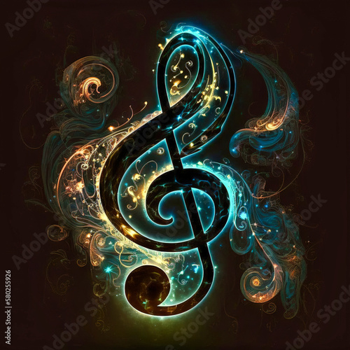 Music graphite poster, treble clef and notes. background, wallpaper. Printable artwork. Generative AI.