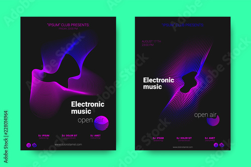 Music Posters with Equalizer and Wave Distorted Circles.