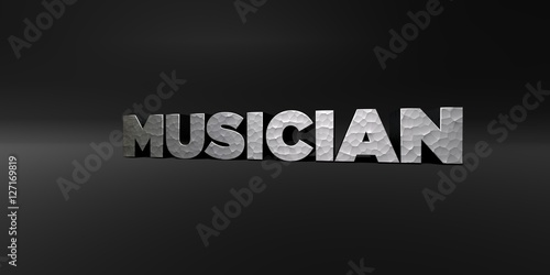 MUSICIAN - hammered metal finish text on black studio - 3D rendered royalty free stock photo. This image can be used for an online website banner ad or a print postcard.