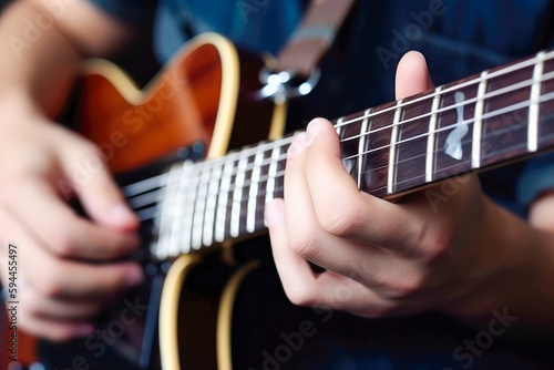 Musician Playing His Electric Guitar. Close Up Shot. High quality generative AI