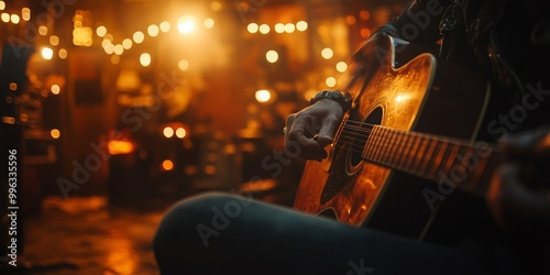 Musician preparing for performance, backstage ambiance, warm inviting lighting, softly blurred venue setting, focused on instrument tuning