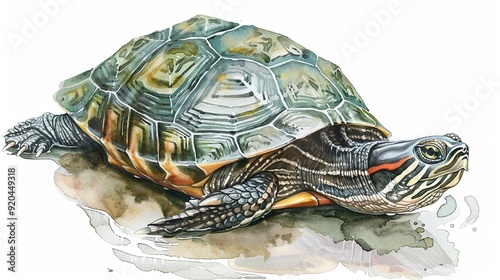Musk turtle floating in a pond,Clipart, watercolor illustration, Perfect for nursery art The style is hand drawn, white background
