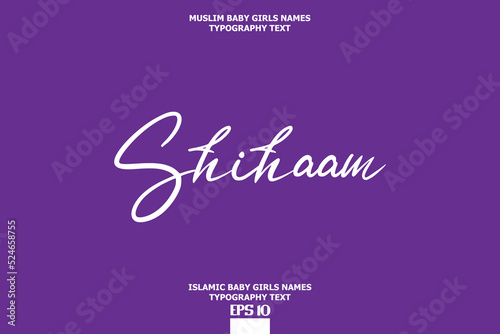Muslim Female Name Shihaam Vector Cursive Text Design on Purple Background