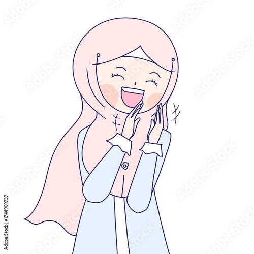 muslim girl claps hand. hijab girl is clapping hands.