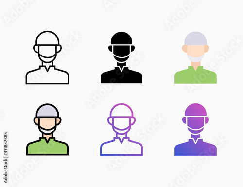 Muslim Man icon set with different styles. Style line, outline, flat, glyph, color, gradient. Editable stroke and pixel perfect. Can be used for digital product, presentation, print design and more.