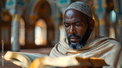 Muslim Man Reading the Quran in a Peaceful Mosque