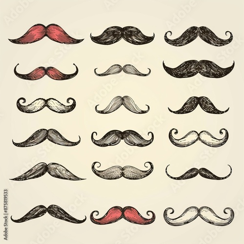 Mustaches icon, hipster sign, Fathers day symbol, barber logo, human whisker, vintage moustache emblem