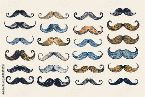 Mustaches icon, hipster sign, Fathers day symbol, barber logo, human whisker, vintage moustache emblem