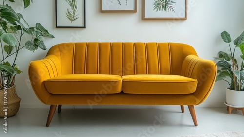 Mustard Yellow Velvet Sofa in Modern Living Room