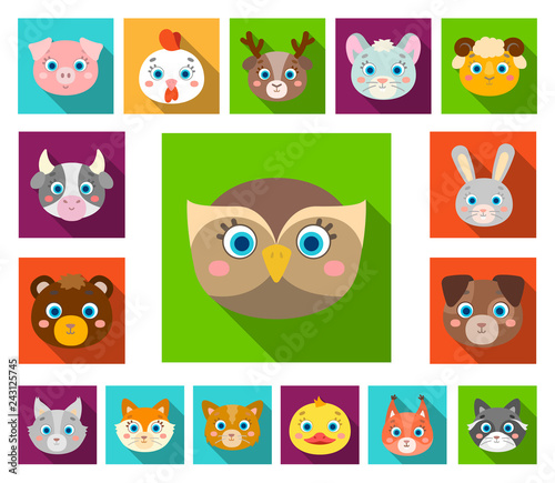 Muzzles of animals flat icons in set collection for design. Wild and domestic animals vector symbol stock web illustration.
