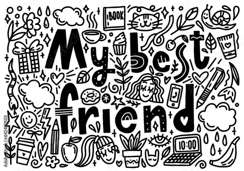 My best friend. Vector hand-drawn set of cute doodles. Children elements on white background.