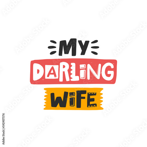 My darling wife. Hand drawn illustration with funny lovely wedding typography. Colored design with stylized lettering. Romantic phrase poster, postcard design element