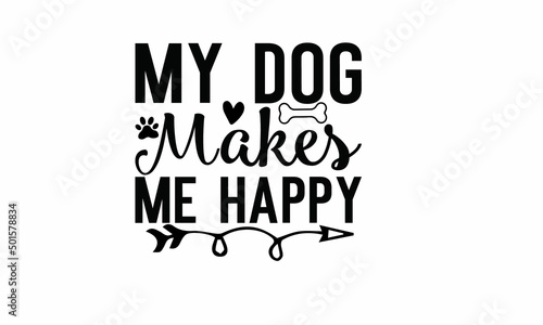 My Dog makes me happy Life is good when you wake up to a dog every day Lettering design for greeting banners, Mouse Pads, Prints, Cards and Posters, Mugs, Notebooks, Floor Pillows and T-shirt prints