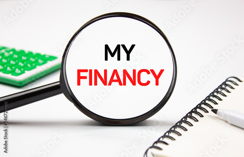 MY FINANCE - text concept through a magnifier. Financial concept.