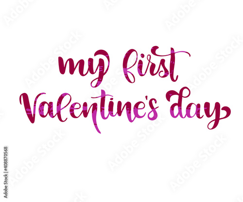 My first Valentine's Day brush lettering, isolated on white, for newborn apparel print, cute nursery decoration, typography poster with hand written calligraphy text. Vector Illustration.