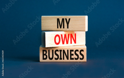 My own business symbol. Concept words My own business on wooden block. Beautiful grey table grey background. Business motivational my own business concept. Copy space.