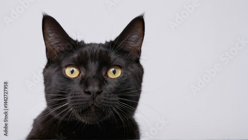 Mysterious Black Cat with Piercing Eyes Sitting in Shadowy Light, Perfect for Halloween, Superstition, and Elegant Pet Themes