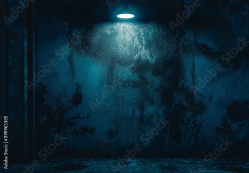 Mysterious Dark Blue Background with Atmospheric Concrete Floor and Walls for an Immersive and Moody Design Aesthetic