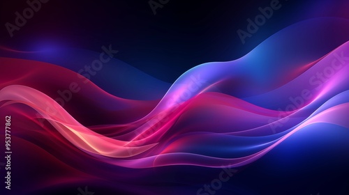 Mysterious Dark Purple Background with Colorful Flowing Light Lines and Gradient Waves, Futuristic Technology Design for Graphic Backgrounds and Wallpaper