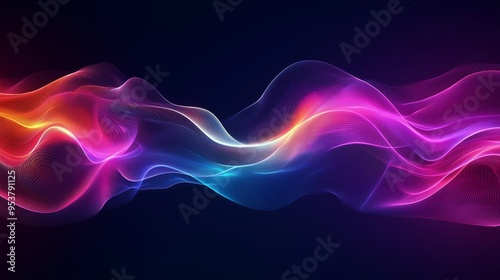 Mysterious Dark Purple Background with Colorful Flowing Light Lines and Gradient Waves, Futuristic Technology Design for Graphic Backgrounds and Wallpaper
