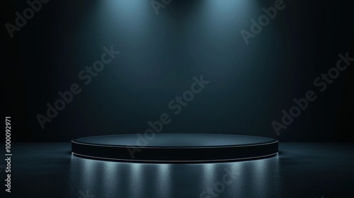 Mysterious dark stage platform with spotlight and empty space for presentation or performance