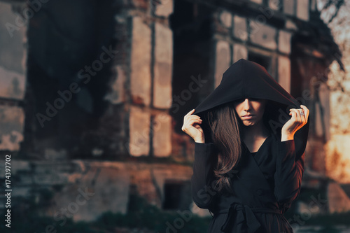 Mysterious Evil Spirit in Front of a Horror Abandoned House