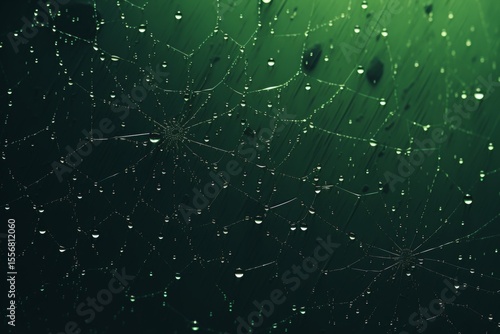 Mysterious green backdrop adorned with intricate cobwebs for an enigmatic atmosphere