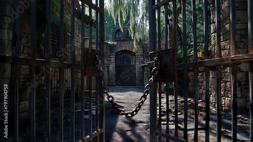 Mysterious Locked Gate Guarding the Darker Corners of Abandoned Amusement Park