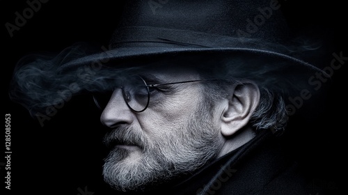 Mysterious Man with Hat and Smoke in a Dark Atmosphere