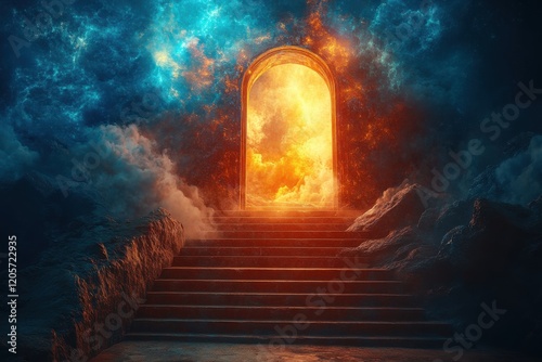 Mysterious open door ethereal landscape digital artwork surreal environment dramatic viewpoint portal to another realm