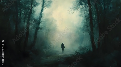 Mysterious Silhouette in a Foggy Forest Clearing Ethereal and Enigmatic Gesture