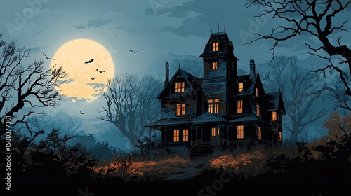 Mysterious spy haunted house illustrated with colorful spooky features for halloween celebration