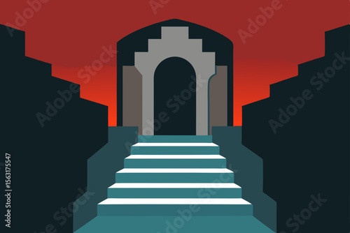 Mysterious Teal Staircase Leading to an Ancient Archway A Digital Art Illustration