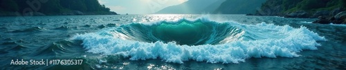 Mysterious whirlpool in the heart of a stormy lake, lake turmoil, seafoam