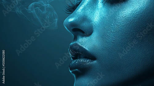 Mystic Blue: A Woman's Face, Smoke, and Teal Hues