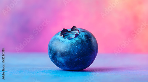 Mystic Blueberry: A solitary, plump blueberry rests on a pastel canvas, its rich indigo skin reflecting a subtle play of light and shadow, showcasing the natural beauty of fresh produce.