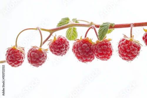 Mystic photo of Tulameen Raspberry on the vine, isolated on white background