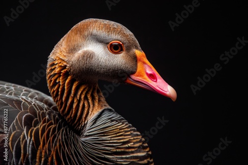 Mystic portrait of Taiga Bean Goose, full body view, isolated on black background