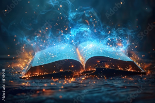 Mystical Book With Blue Smoke and Sparks