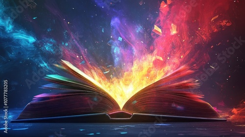Mystical Book with Glowing Pages and Magical Smoke