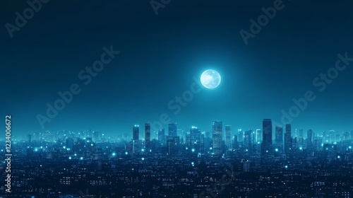 Mystical cityscape at night, a stunning view under the full moon's glow