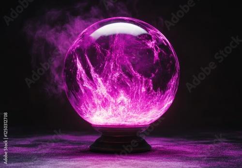 Mystical Crystal Ball with Pink Flames on Dark Background
