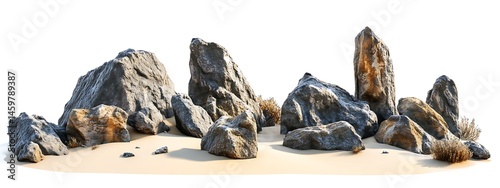 Mystical desert rocks on a white background