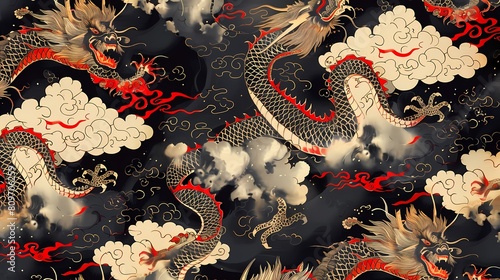 Mystical dragons amidst clouds and stars a dance of Eastern fantasy