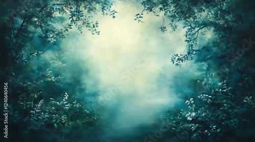 Mystical forest path, light, leaves, background