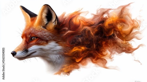 Mystical Fox Portrait with Flowing Fiery Energy Emanating from its Fur