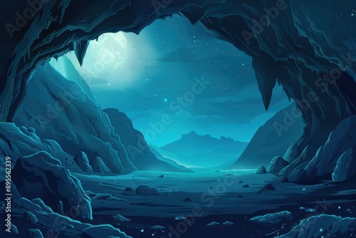 Mystical moonlight cavern entrance reveals an enchanting landscape