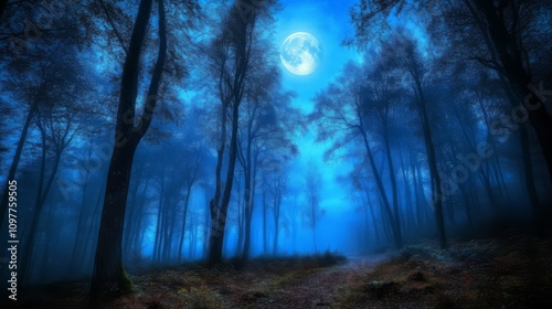 Mystical moonlit forest path.
